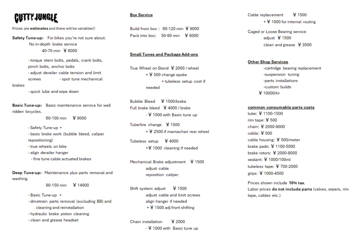 Let Cutty Jungle take care of your bike and keep it ready to rip on the trails or to the combini.